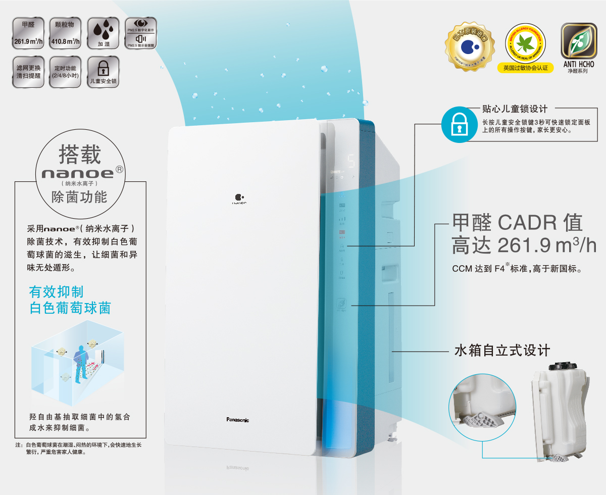 1、PM2.5数字显示 2、室内整体污染度指示灯 3、白色葡萄球菌、金黄色葡萄球菌、大肠杆菌除菌率99%以上 4、集尘脱臭一体式滤网、加湿过滤网 |